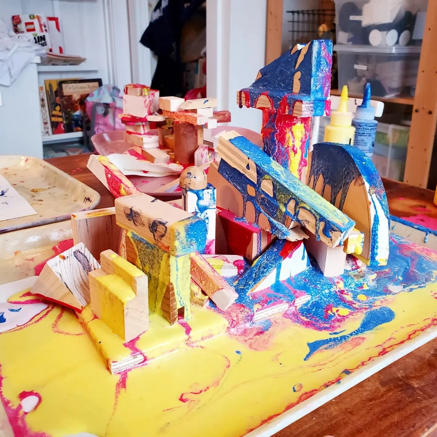 Children will work with a range of materials, including paint, wood, natural objects, clay and more.
